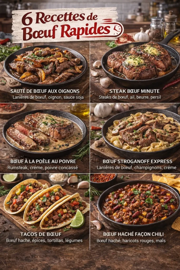 Le bœuf est une viande savoureuse et polyvalente qui se prête à de nombreuses préparations rapides. Qu’il soit sauté, grillé, mijoté ou