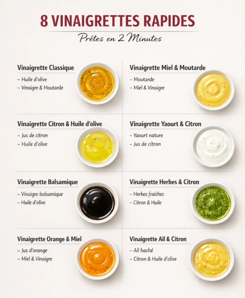 Les vinaigrettes maison sont la clé d’une salade réussie. En quelques minutes, elles transforment des légumes simples en plats savoureux