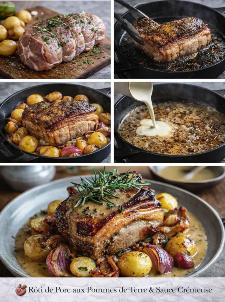 Rôti de Porc Doré aux Herbes, Pommes de Terre & Sauce Crémeuse