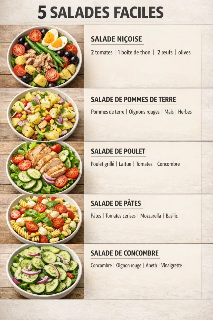 Les salades sont idéales pour des repas légers, équilibrés et rapides à préparer. En quelques ingrédients, elles offrent une explosion