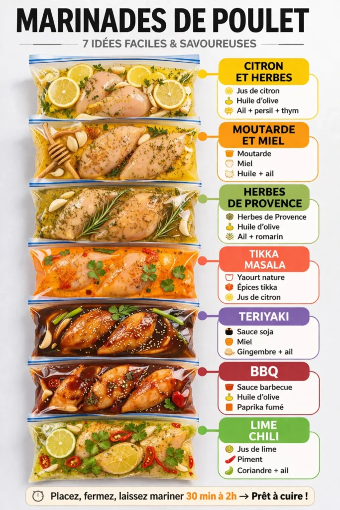 Les marinades sont la clé d’un poulet juteux et savoureux. En quelques minutes, elles transforment une simple viande blanche en