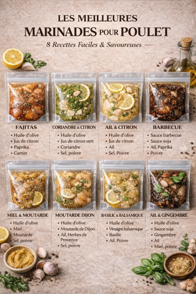 Les marinades sont la clé d’un poulet tendre, juteux et plein de goût. Elles permettent d’assaisonner la viande en profondeur
