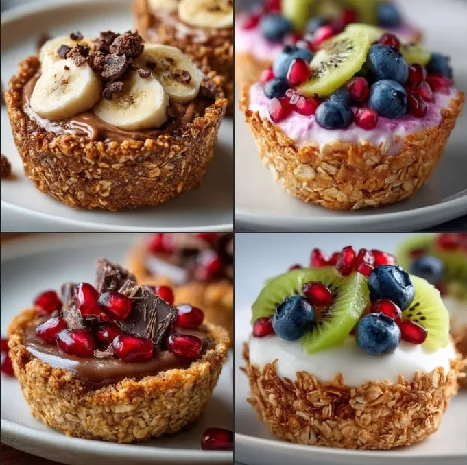 Ces tartelettes sont idéales pour un brunch de Noël, un petit-déjeuner en famille ou même un buffet festif. Elles se déclinent en plusieurs versions : banane-chocolat pour les amateurs de douceur, avoine-yaourt et fruits frais pour les adeptes de légèreté, chocolat-grenade pour une touche raffinée, et kiwi-myrtilles-grenade pour une explosion de couleurs et de vitamines.