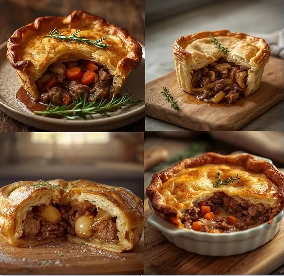 3. Tourte Feuilletée à la Viande, Oignons Perlés et Morceaux Rôtis