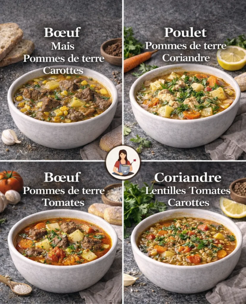 Ces quatre recettes de soupes représentent parfaitement la cuisine maison : simple, accessible et délicieuse. Que vous choisissiez le bœuf, le poulet ou les lentilles, vous obtiendrez un plat complet, nourrissant et réconfortant.