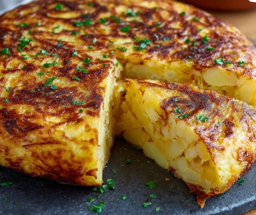 La Tortilla Espagnole parfaite est moelleuse à l’intérieur, légèrement dorée à l’extérieur, avec des pommes de terre fondantes et des œufs bien liés. L’oignon apporte une douceur subtile, tandis que l’huile d’olive donne une richesse incomparable.