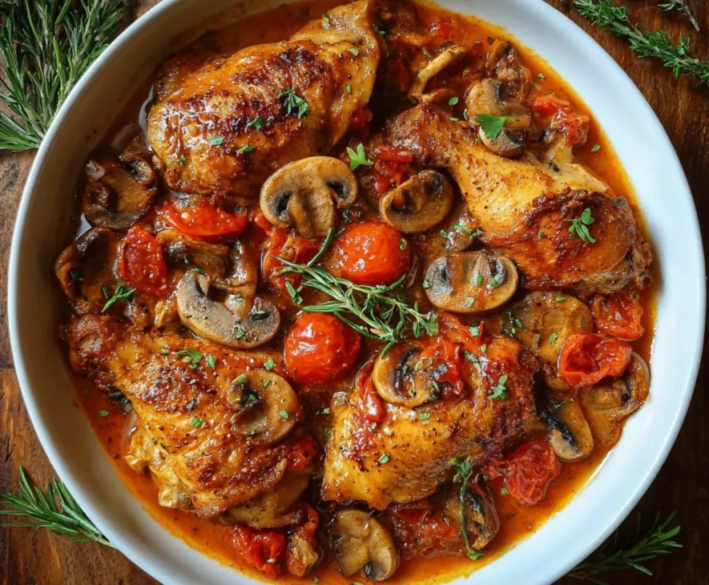 Le Poulet Sauté Chasseur à la Tomate est un grand classique de la cuisine française, un plat à la fois
