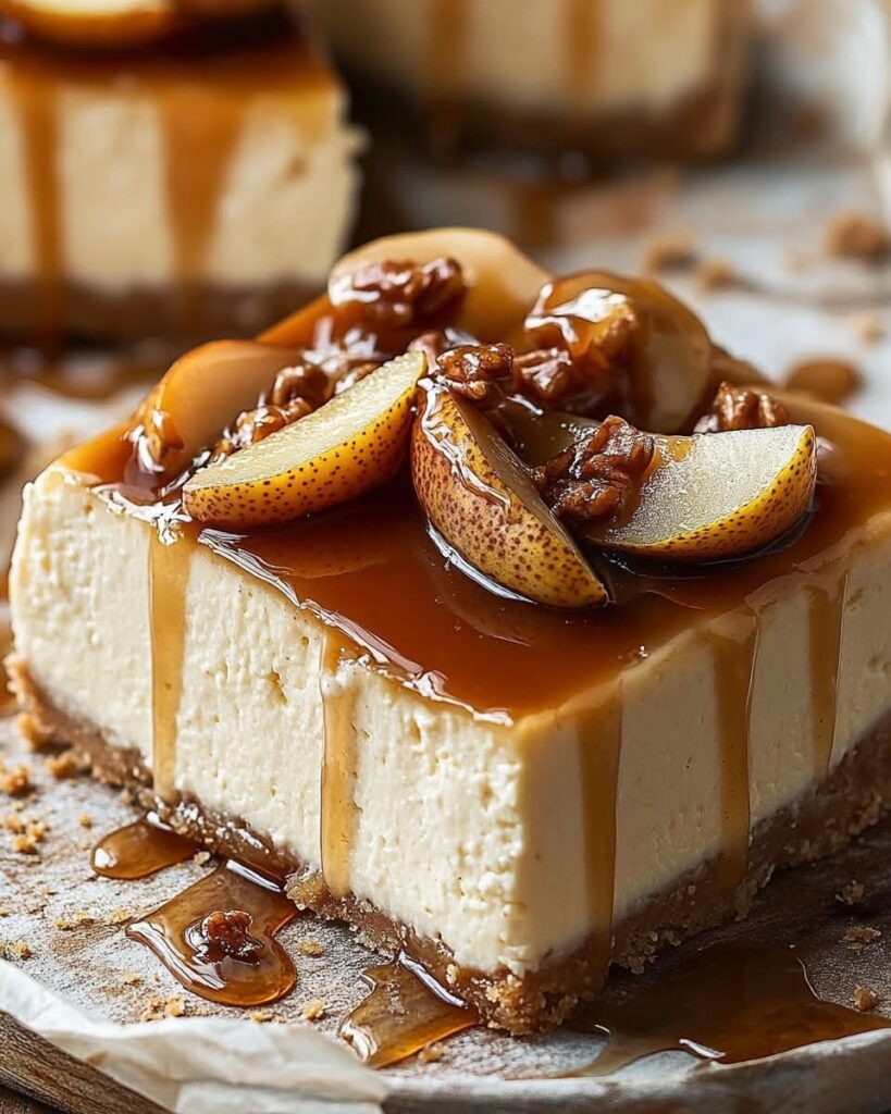 A luscious dessert that combines the creamy richness of cheesecake with the sweet, spiced flavor of caramelized pears. Perfect for