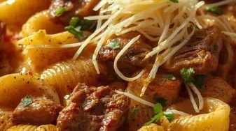 Pâtes en Coquille au Bœuf Fondant et Sauce Tomate Crémeuse