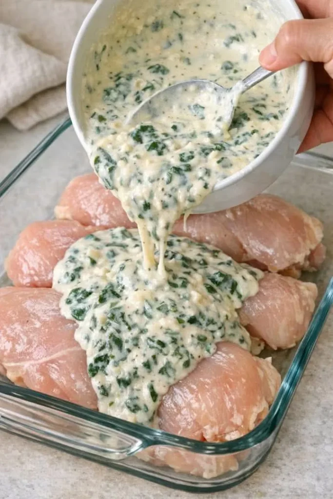 Le Poulet au four crémeux aux épinards et au parmesan est l’un de ces plats qui réunit simplicité, gourmandise et