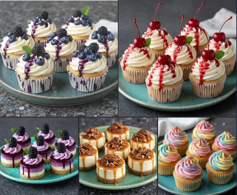 Ces cinq recettes de gâteaux incroyables — cupcakes aux fruits des bois, cupcakes aux cerises, mini cheesecakes aux mûres, mini cheesecakes caramel et noix de pécan, et cupcakes arc-en-ciel — sont une célébration de la pâtisserie maison. Elles allient saveurs, textures et esthétique pour des desserts à la fois délicieux et spectaculaires. Faciles à réaliser, elles prouvent qu’il est possible de créer des gâteaux dignes d’un chef dans sa propre cuisine. Chaque bouchée est une explosion de douceur, de couleur et de plaisir, parfaite pour toutes les occasions.