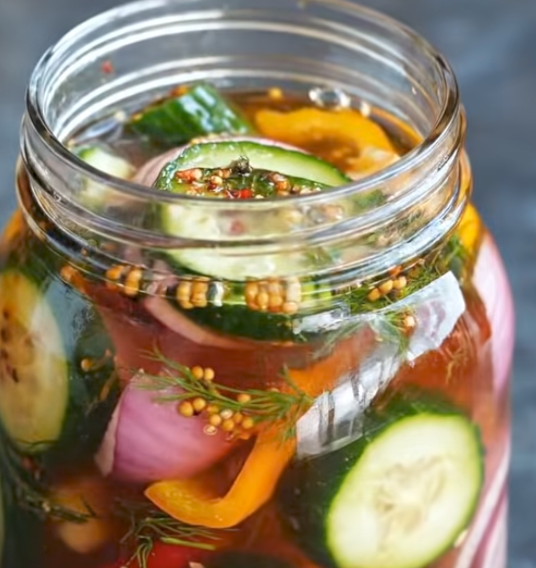 Rien de plus simple et savoureux que des légumes marinés maison préparés directement au réfrigérateur. Croquants, parfumés et légèrement acidulés, ils ajoutent une touche fraîche et gourmande à tous vos plats : sandwiches, salades, grillades ou apéritifs. Cette méthode rapide ne demande aucune stérilisation et transforme de simples légumes en pickles colorés prêts à déguster en quelques heures. Une recette pratique, économique et parfaite pour toujours avoir un condiment fait maison sous la main.