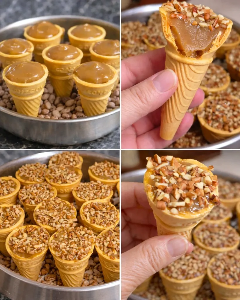 Mini Cornets Gourmands au Caramel et Fruits Secs Croquants