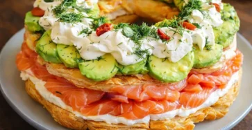 La couronne feuilletée au saumon fumé, avocat et fromage frais est une entrée raffinée et pleine de fraîcheur. Son feuilletage doré et croustillant renferme une garniture onctueuse et délicatement parfumée. …