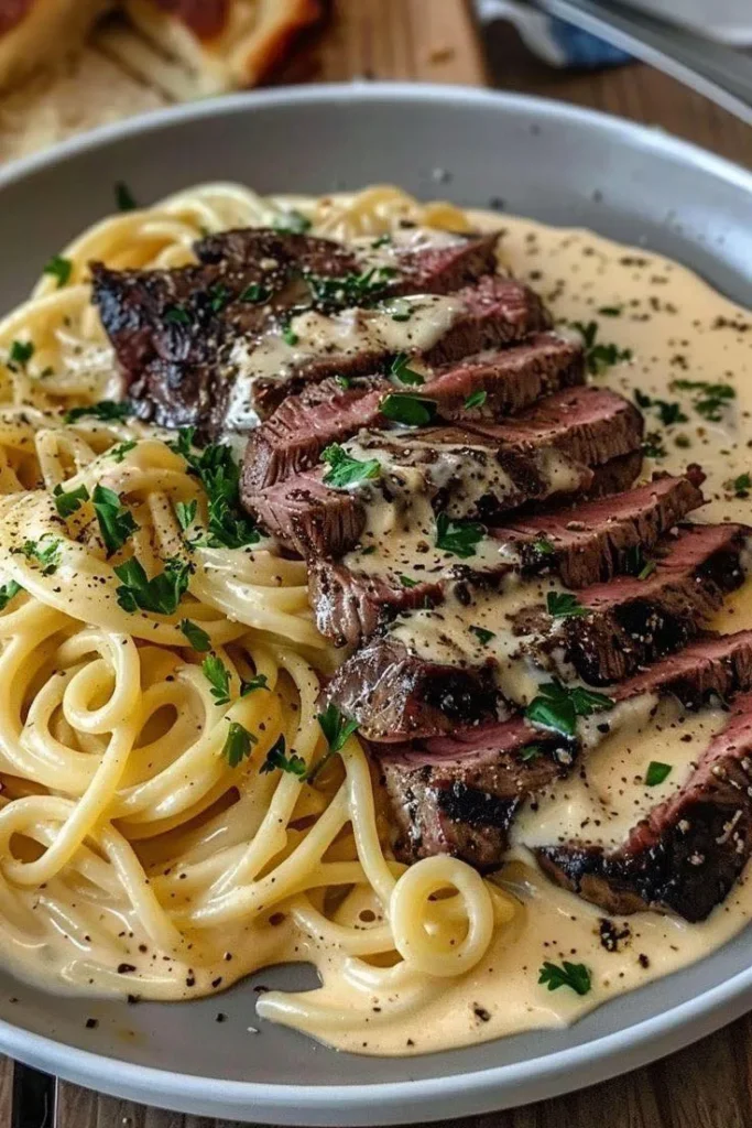 Le Garlic Butter Steak avec macaroni au fromage aux herbes est une ode à la gourmandise et au réconfort. Ce