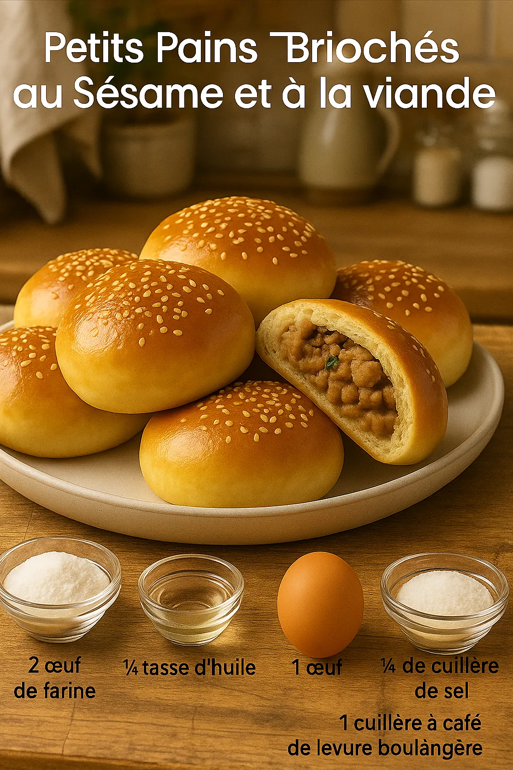Les petits pains briochés au sésame farcis à la viande sont une merveille de la cuisine maison. Moelleux, dorés et généreusement garnis, ils allient la douceur d’une pâte briochée à la richesse d’une farce savoureuse. Parfaits pour un repas convivial, un pique-nique ou un buffet, ils séduisent par leur texture légère et leur goût équilibré.