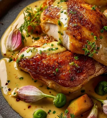 Les pilons de poulet à la crème, moutarde et miel font partie de ces plats réconfortants qui plaisent à tous. À la fois fondants, parfumés et généreusement nappés d’une sauce onctueuse, ils incarnent parfaitement la cuisine familiale moderne : simple à réaliser, savoureuse et élégante dans l’assiette.