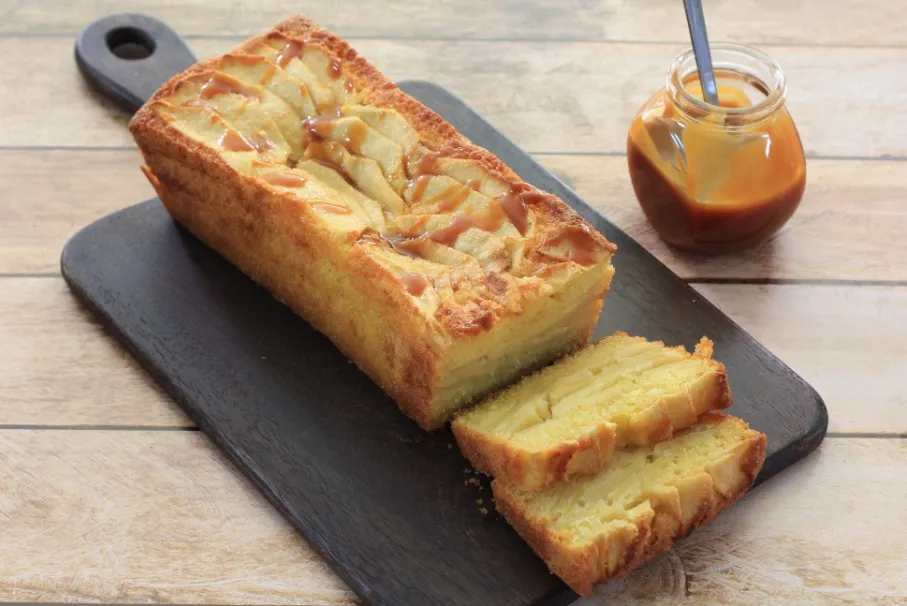 Quatre Quarts Pommes-Caramel : nappez les pommes de caramel avant cuisson pour un dessert ultra gourmand.
