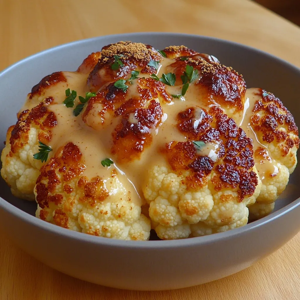 4. Présentation festive : Servez le chou-fleur entier au centre de la table, comme un rôti, pour un effet spectaculaire.